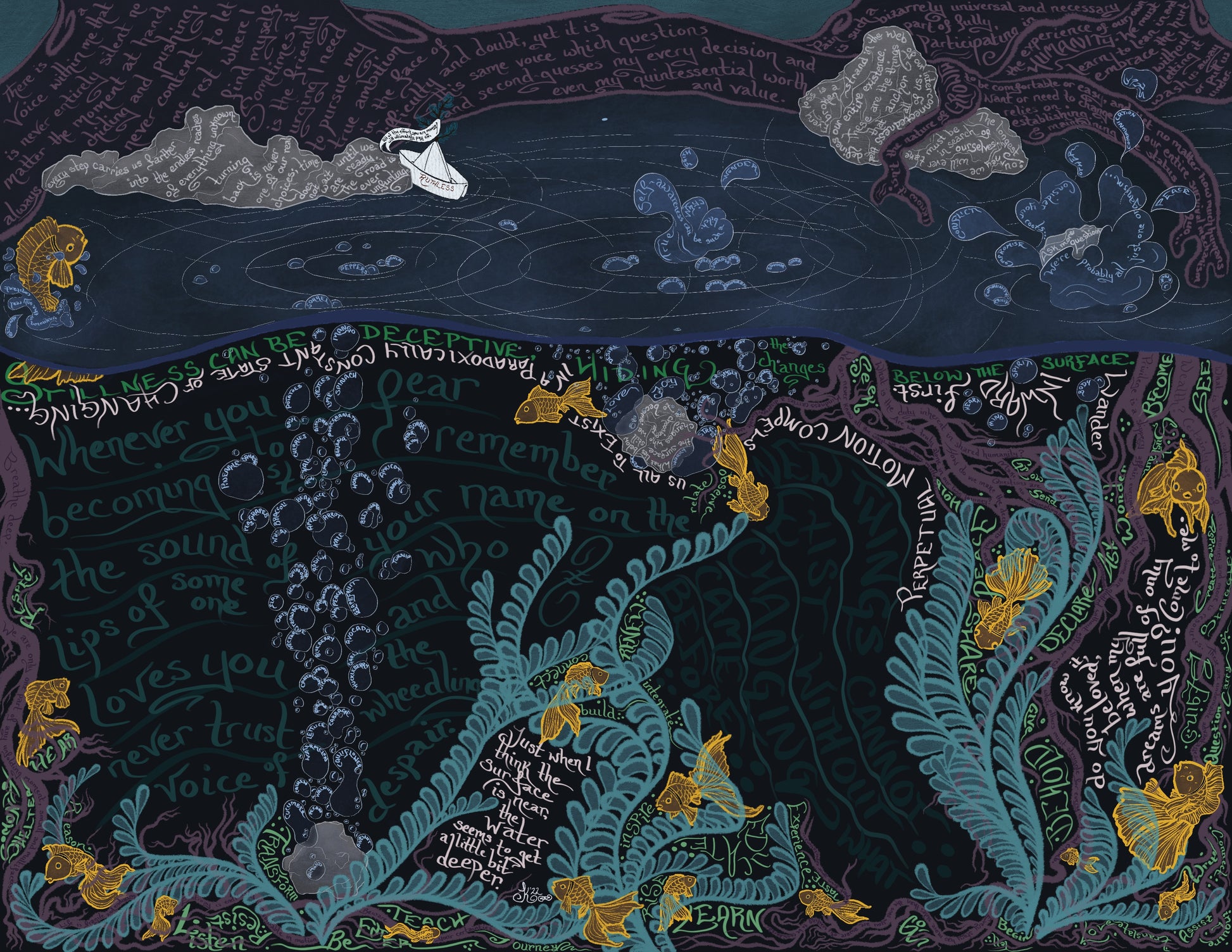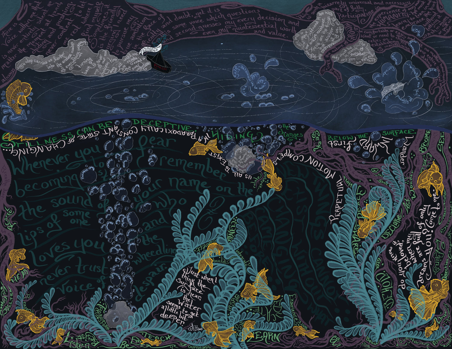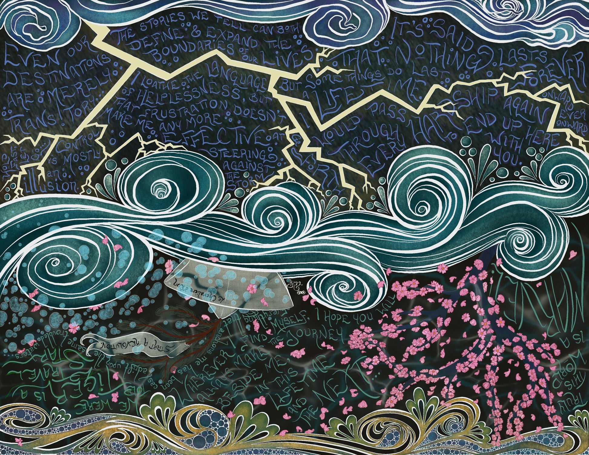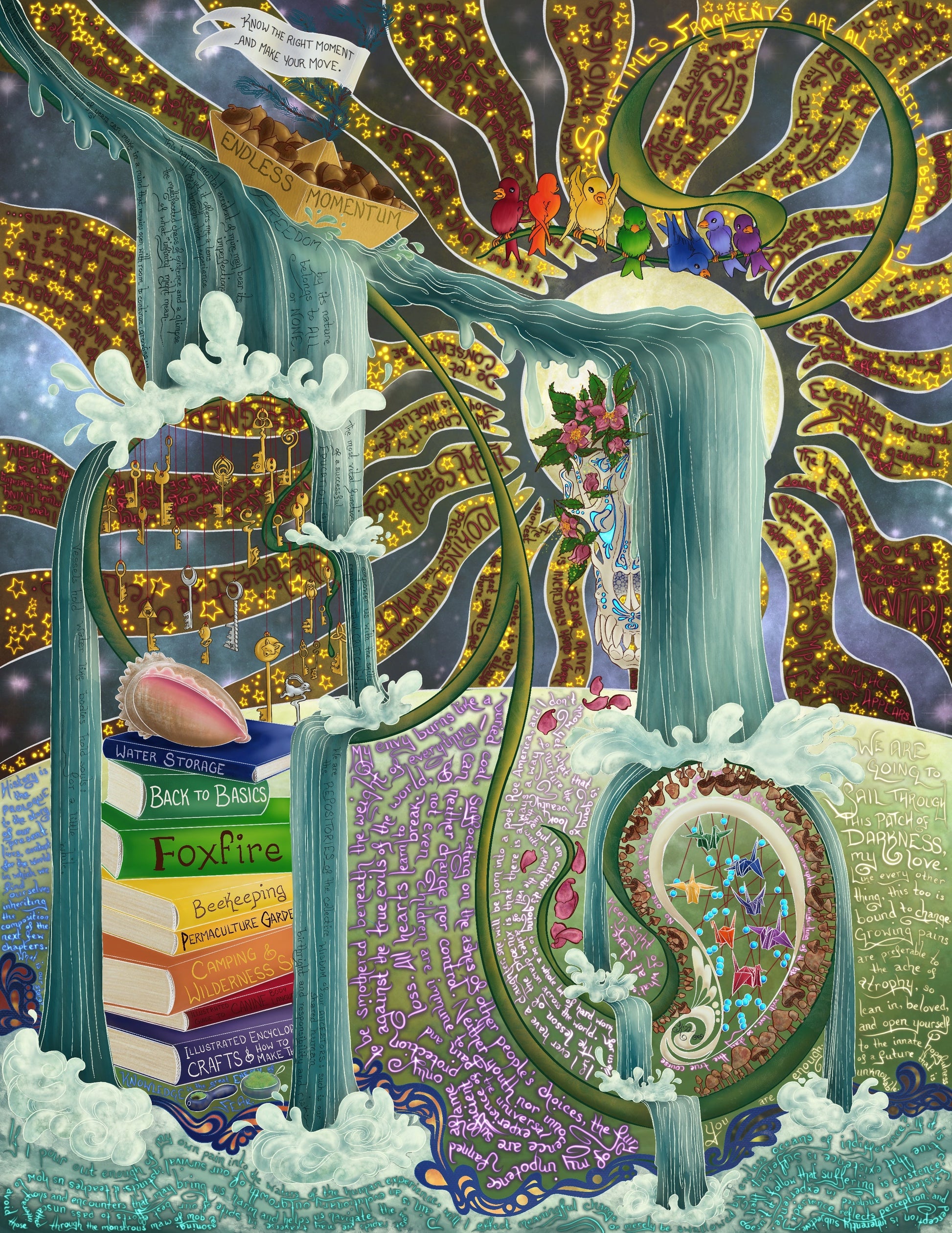 In spite of the isolation of the pandemic years, they have brought crucial opportunities for personal growth and several major changes to my life, including the social “coming out” that has followed my acceptance of the reality that I am transgender, and the amazing-but-terrifying decision to become a full-time artist. This series has been instrumental in helping me process many of the experiences of the past several years and their effect on me as both a creator and a human being. Goldfish are a symbol of family, however it is composed; as we have tightened our social circles to their innermost rings, the relationships that are worth the work of maintaining have become increasingly precious.
